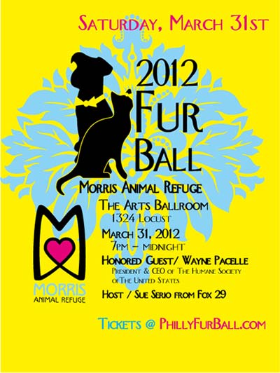 Join the Morris Animal Refuge and lovers of all furry-footed-friends for the 2012 Philly Fur Ball! The 15th annual Fur Ball will be held on Saturday, March 31st 2012 at the city's newest, most dashing venue, the Arts Ballroom from 7pm-Midnight. This year's event features a 5-hour select open bar, elegant hors d’oeuvres & carving stations by 12th Street Catering Company, a live DJ and jazz trio to dance the night away. The Morris Animal Refuge will be highlighting a grand silent auction and raffle prizes to raise money and awareness for the abandoned pets of Philadelphia. This year's event will also debut The Refuge's virtual adoption program. All proceeds directly benefit the Morris Animal Refuge. The 2012 Fur Ball will be hosted by Fox29 Good Day Philadelphia's, Sue Serio and the honored guest will be Wayne Pacelle, CEO & President of The Humane Society of the United States. General admission tickets are $99 and Reserved Seating tickets are $139. Tickets are on sale today and feature an early bird discount for the first 20 people buying Reserved Seating. For additional information & sponsors, please visit www.PhillyFurBall.com or www.MorrisAnimalRefuge.org. ![]() |
